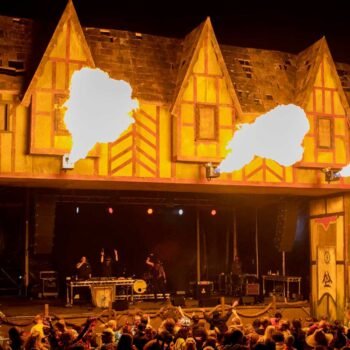 Boomtown (also known as Boomtown Fair) is a British music festival held annually on the Matterley Estate in South Downs National Park, near Winchester, Hampshire. It was first held in 2009 and has been held at its current site since 2011. Its diverse line-up of bands, DJs and speakers perform on many different stages each a part of a district with its own individual theme. Each yearly event is known as a Chapter and expands on the story line from the previous year, told through the sets, live actors and many forms of alternate reality games. The festival site is split into several districts, and the narrative is reflected in the design of the districts, streets and venues, which are populated by hundreds of actors to play the role of inhabitants. The large scale of the sets and infrastructure require six weeks of construction, and a month of disassembly.